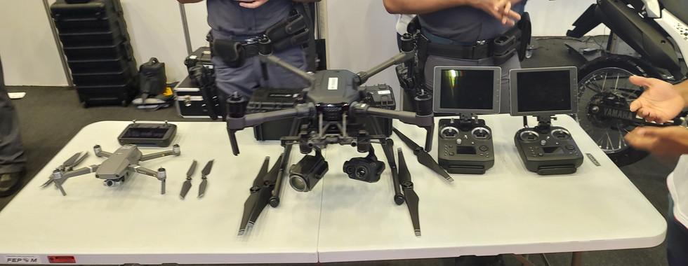 Também estavam presentes autoridades da segurança pública, com demonstrações de equipamentos e armamentos, também com a adoção de muita, mas muita tecnologia.